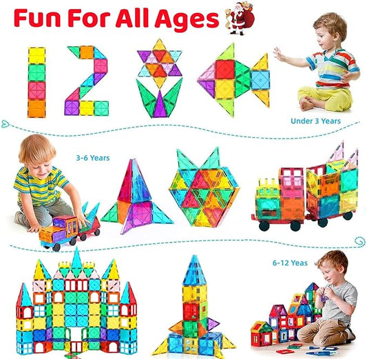 100PCS Magnetic Tiles Blocks for Kids Ages 3-5 4-8,STEM Learning Educational Preschool Magnet Building Toys for Toddlers,Christmas Birthday Gifts Toys for 3 4 5 6 7 8+ Year Old Boys Girls