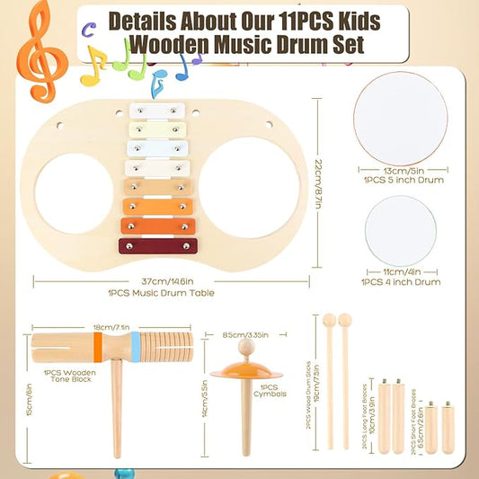 Drum Set for Toddlers 3+ Year Old Boys Girls Baby Wooden Musical Instruments Drumset for Ages Kids Montessori Preschool Educational Music Sensory Toys 3-5 Birthday