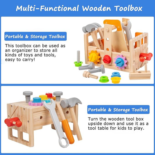 HOMEE Wooden Kids Tool Set, 25 Pcs Toddler Tool Kits, Tool Toys Box, Tool Set for Kids, Montessori STEM Educational Tools Toys, Pretend Play Construction Toys for 3 4 5 Years Kids Boys and Girls