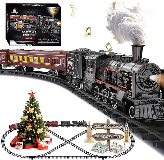 Train Set, Electric Train Set Toys with Smoke, Lights & Sound, Train Set for Under Christmas Tree with Steam Locomotives, Cars and Tracks, Christmas Train Toys for 3 4 5 6 7+ Years Old Kids