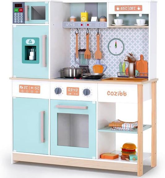Wooden Play Kitchen for Kids Toddlers, Kitchen Playset with Stove, Oven, Sink, Fridge and Accessories Toy Kitchen Set with Plenty of Play Features, Kids Play Kitchen Designed, Gift for Ages 3+