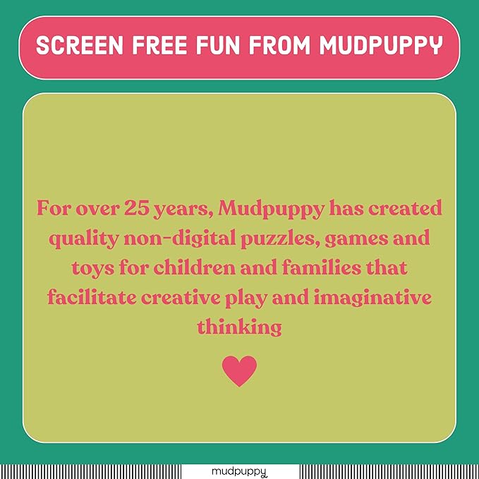 - MUDPUPPY - For over 25 years, Mudpuppy has created quality non-digital puzzles, games and toys for children and families that facilitate creative play and imaginative thinking. One of our core design principles is to engage kids and promote learning without the use of digital screens or technology. Mudpuppy is committed to designing and producing eco-friendly products that have a minimal carbon footprint. All Mudpuppy products adhere to CPSIA, ASTM, and CE Safety Regulations