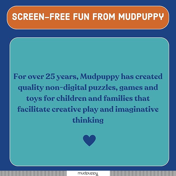 - MUDPUPPY - For over 25 years, Mudpuppy has created quality non-digital puzzles, games and toys for children and families that facilitate creative play and imaginative thinking. One of our core design principles is to engage kids and promote learning without the use of digital screens or technology. Mudpuppy is committed to designing and producing eco-friendly products that have a minimal carbon footprint. All Mudpuppy products adhere to CPSIA, ASTM, and CE Safety Regulations