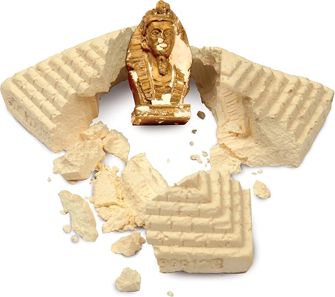 - REVEAL FOUR HIDDEN TREASURES by chipping away at each pyramid and brick inside this kit with the chisel and dusting brush.