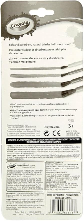- CRAYOLA PAINT BRUSHES: Features 8 paint brushes in varying sizes