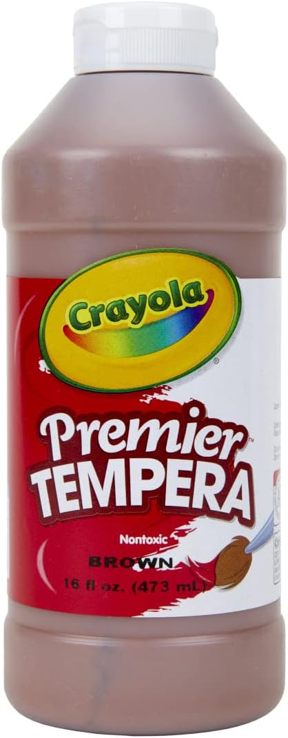 - CRAYOLA TEMPERA PAINT: Features 16oz of Brown Paint in an easy squeeze bottle