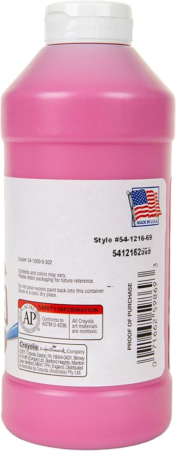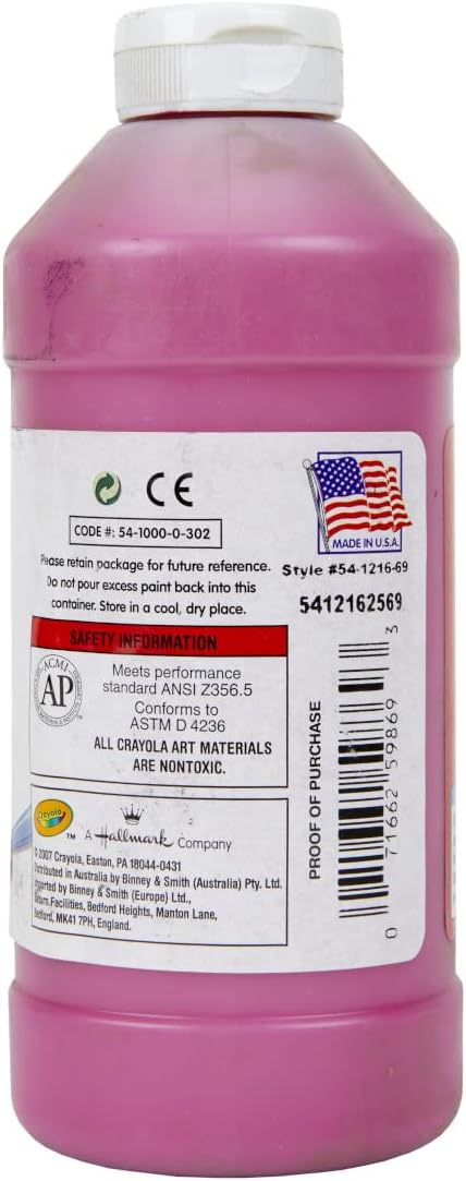 - CRAYOLA TEMPERA PAINT: Features 16oz of Magenta Paint in an easy squeeze bottle