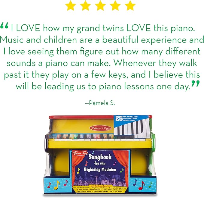 Melissa & Doug Learn-To-Play Piano With 25 Keys and Color-Coded Songbook Toy Piano For Baby, Kids Piano Toy, Toddler Piano Toys For Ages 3+, Yellow/Brown,green