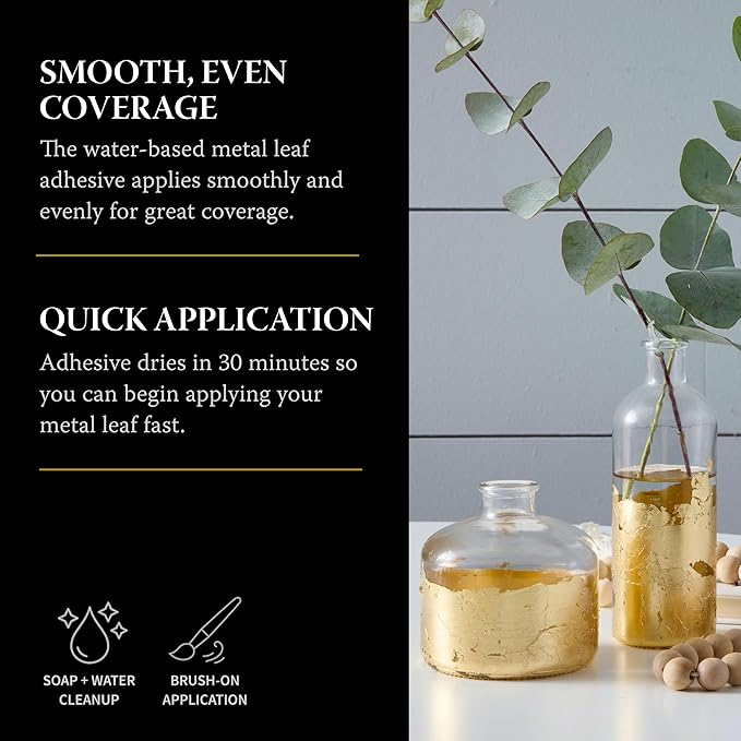 - GREAT COVERAGE – The water-based metal leaf adhesive applies smoothly and evenly.
