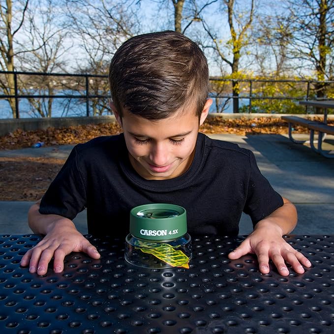 Carson Kids BugLoupe 4.5x Pre-Focused Stand Magnifier Loupe for Viewing Insects, Plants, Coins, Stamps, Maps, Fine Print and Wildlife (HU-55), Green, One Size