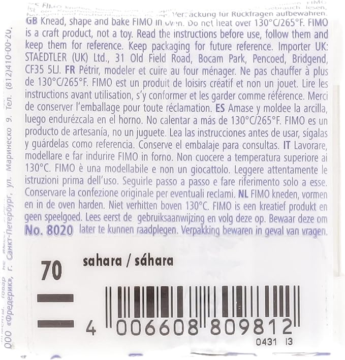 Staedtler FIMO Soft Polymer Clay - -Oven Bake Clay for Jewelry, Sculpting, Crafting, Sahara 8020-70