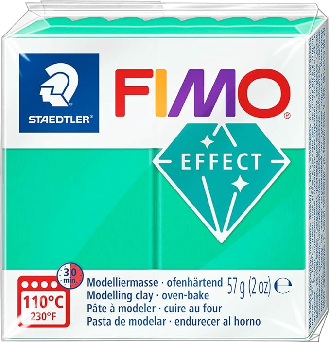 Staedtler FIMO Effects Polymer Clay - -Oven Bake Clay for Jewelry, Sculpting, Translucent Green 8020-504