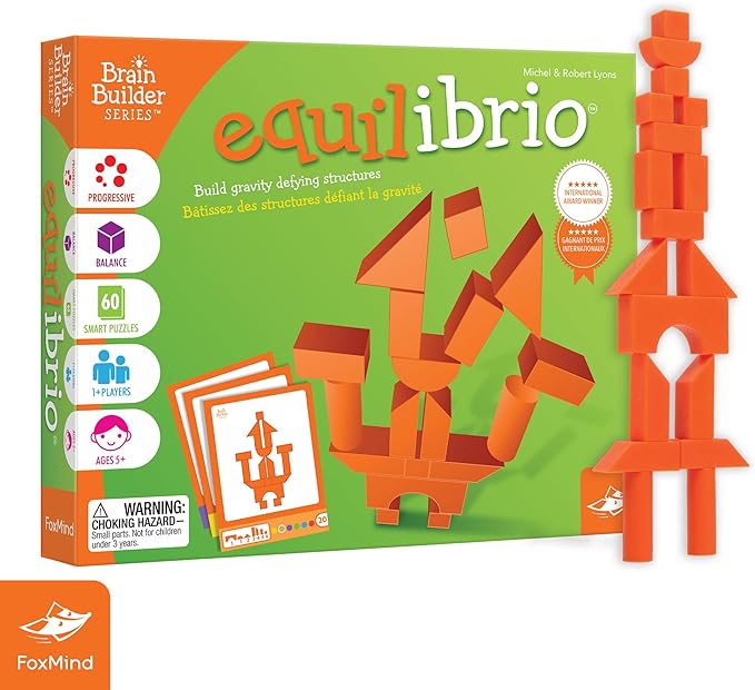 Foxmind Games: Equilibrio Spatial Logic and Dexterity Game, Build Gravity Defying Structures, 60 Smart Puzzles to Work Through, 6 Levels of Complexity, Develops STEM Skills, 1+ Players, For Ages 5+