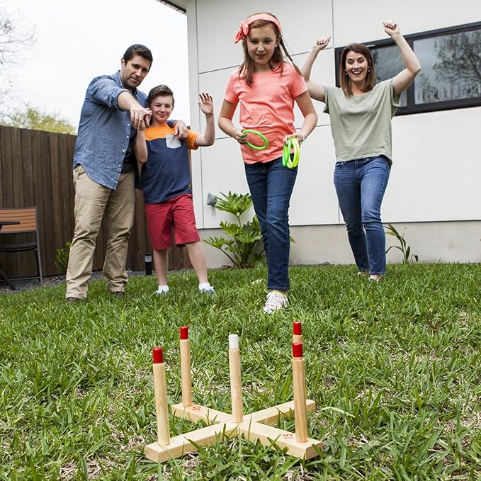 - DURABLE WOODEN CONSTRUCTION: Designed for ultimate durability, this long lasting ring toss set is made from solid wood, ensuring it will withstand regular outdoor use on camping trips, during backyard barbecues or on the playground