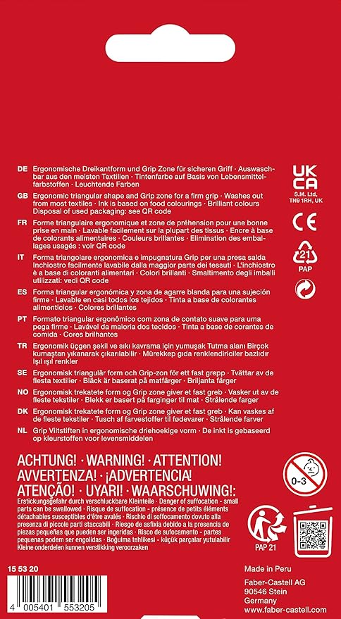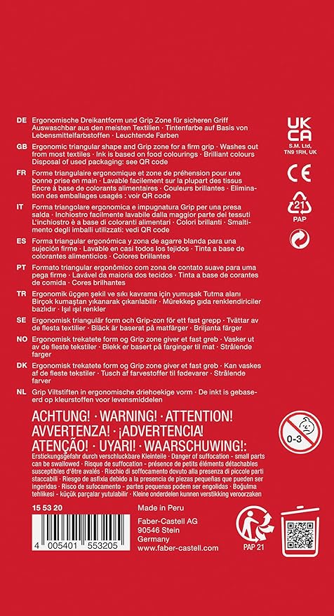 - 20 fine line markers - the Faber-Castell grip marker set includes 20 fine line coloring markers. Vibrant ink colors are made from food-grade dyes