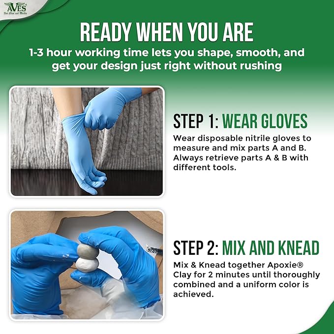- ๐๐๐ฌ๐ฒ ๐๐ซ๐๐ฉ๐๐ซ๐๐ญ๐ข๐จ๐ง: Measure and mix equal parts of A & B with disposable nitrile gloves. Mix and knead for 2 minutes until it is a uniform color and begin your project. Smooth or texture with a wet finger, brush, cotton swab, or sculpting tool. With up to 3 hours working time, you will have plenty of time to create.