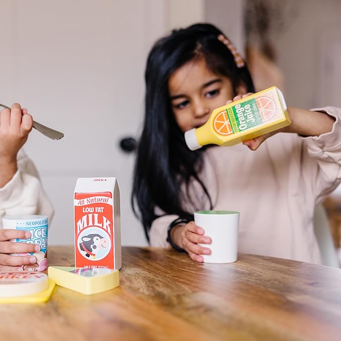 Melissa & Doug Fridge Food Wooden Play Food Set - 9 Pieces Pretend Play Kitchen Accessories, For Kids Kitchen, Wooden Grocery Sets For Kids Ages 3+