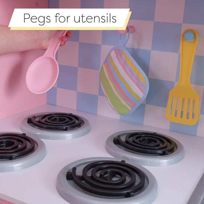 KidKraft Wooden Large Pastel Play Kitchen with Turning Knobs, See-Through Doors and Play Phone Gift for Ages 3+