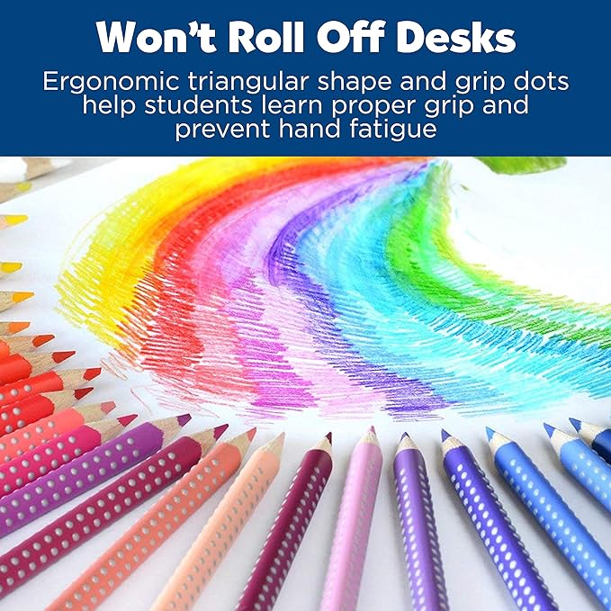 - ERGONOMIC WATER COLOR PENCILS - Grip Watercolor Pencils feature a triangular shape and grip dots to give better control. This shape allows you to use the pencil longer without hand fatigue. Bonus - These water colored pencils will not roll off your desk!