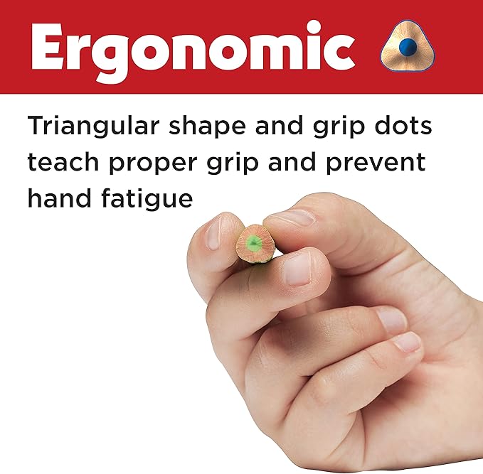 - ERGONOMIC COLOR PENCILS - Grip Colored Pencils feature a triangular shape and grip dots to give better control. This shape allows you to use the pencil longer without hand fatigue. Bonus - These colored pencils will not roll off your desk!