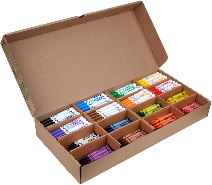 - CRAYOLA CLASSPACK: This Crayola Classpack features 64 Large Crayola Crayons and 64 Ultra Clean Washable Markers.