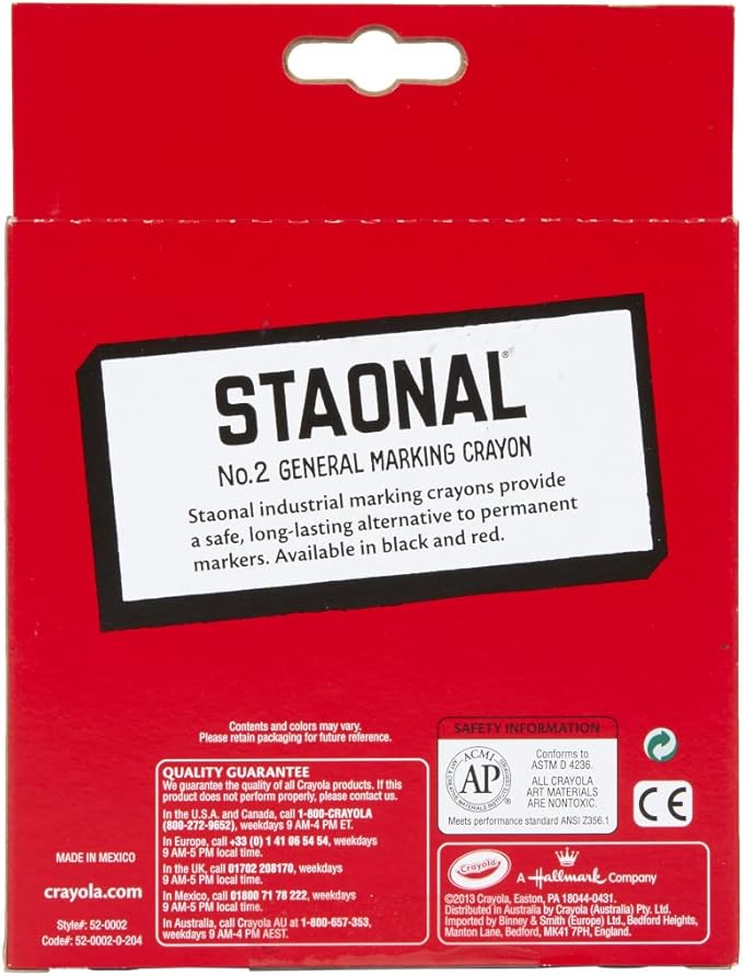 - PERMANENT MARKS: Staonal crayons make permanent marks on cardboard, paper, aluminum, wood, and more!