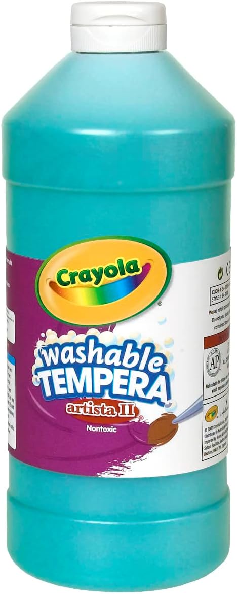 - CRAYOLA KIDS PAINT: Features 32 ounces of Crayola Washable Turquoise Tempera Paint in a squeeze top bottle.