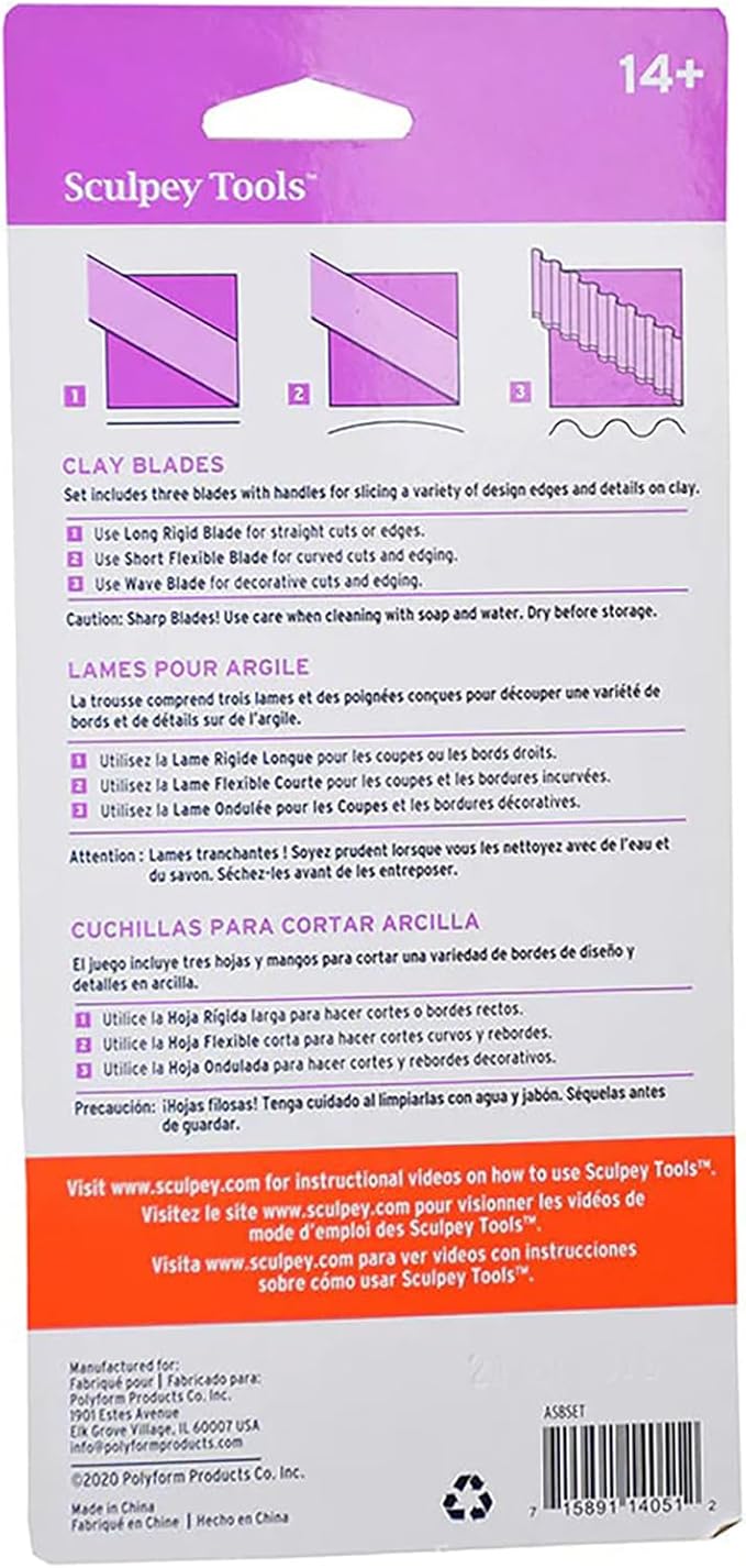 Sculpey Tools Clay Blades, 3 blades included - flexible, wavy and rigid blade, polymer oven-bake clay tool, great for all skill levels and craft projects