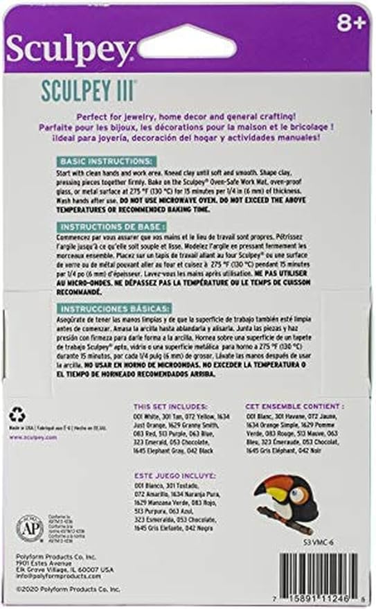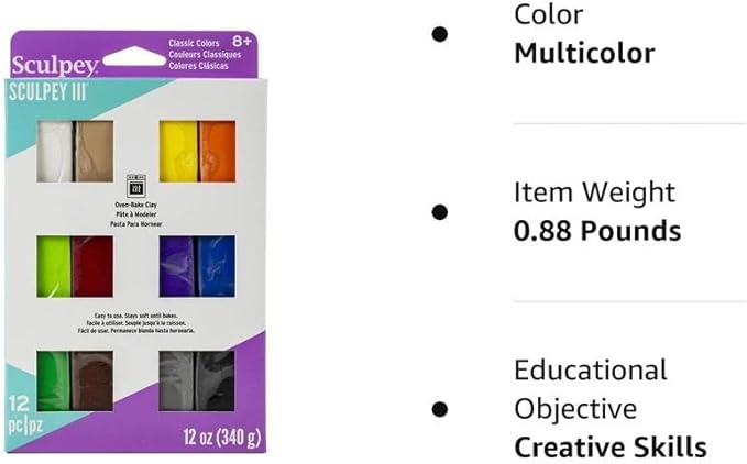 Sculpey III 12 Bright Colors of Polymer Oven-Bake Clay, Non Toxic 12 oz., great for modeling, sculpting, holiday, DIY & school projects.Great for kids & beginners!