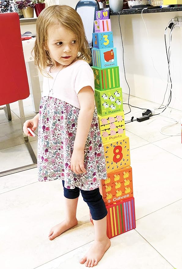 - Suitable age 2 years plus. It is always advisable that an adult to supervise and enjoy the interaction of children with this toy. The stacking toy cube set is great fun toy with lots of educational values. It is a great early learning material and ideal for babies’ early education and development and can be used as Montessori materials