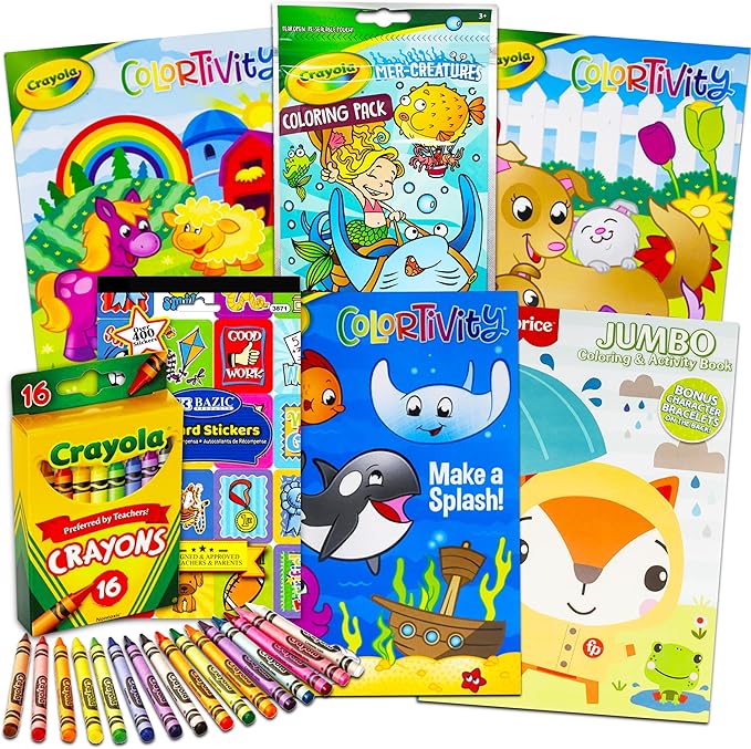 - Crayola Coloring Books for Kids Toddlers Crayola Learning Set Bundle - 7 Pc Crayola Animal Coloring Activity Books with Crayola Learning Crayons and Stickers (Crayola School Supplies).