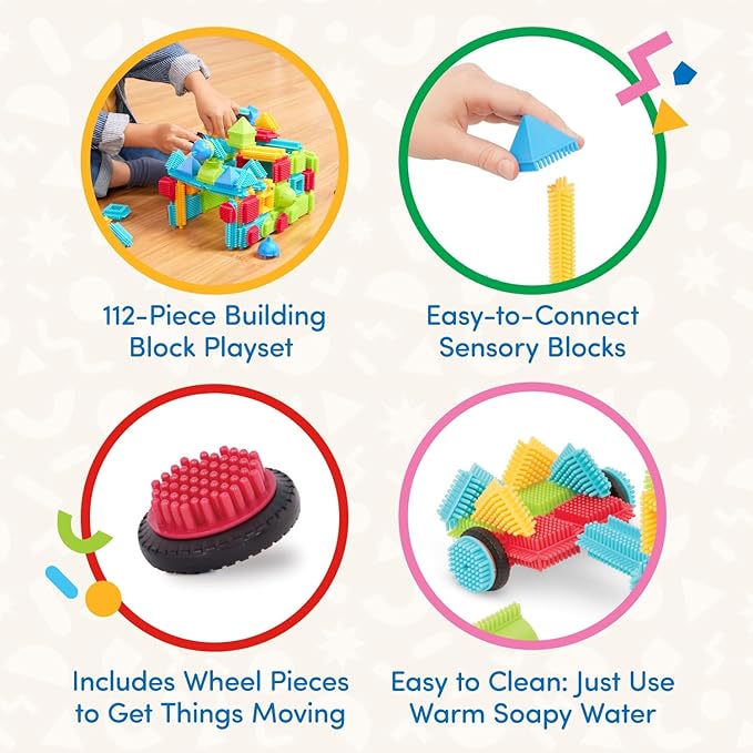 Battat- Bristle Blocks- STEM Interlocking Building Blocks- 112 pc Playset- Developmental Toys for Toddlers & Kid- Basic Builder Set- 2 Years +