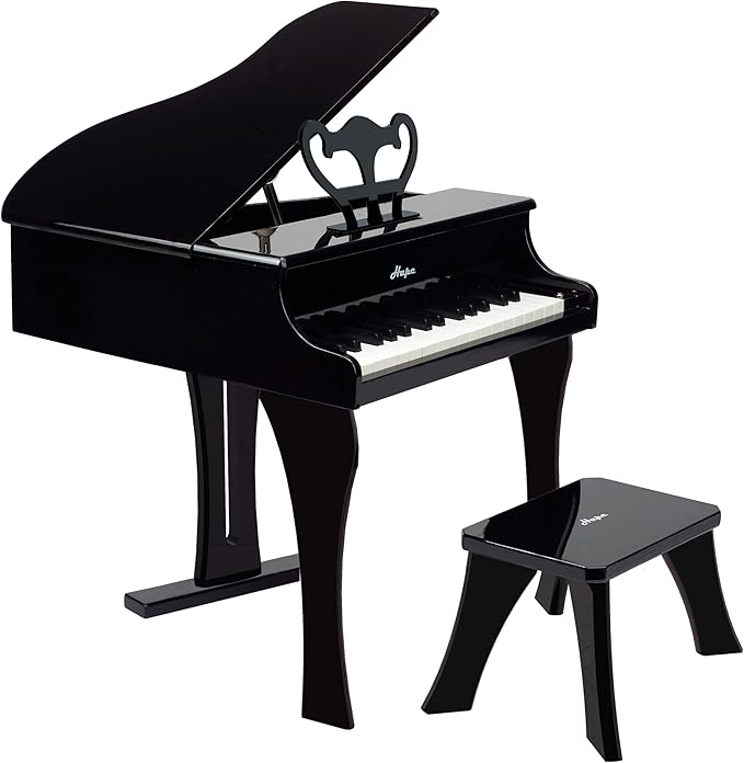 Hape Classic Grand Black Piano| Thirty Key Wooden Keyboard Musical Toy Set for Kids Age Year 3 and up