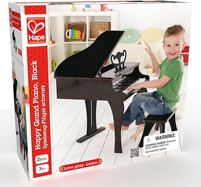 Hape Classic Grand Black Piano| Thirty Key Wooden Keyboard Musical Toy Set for Kids Age Year 3 and up