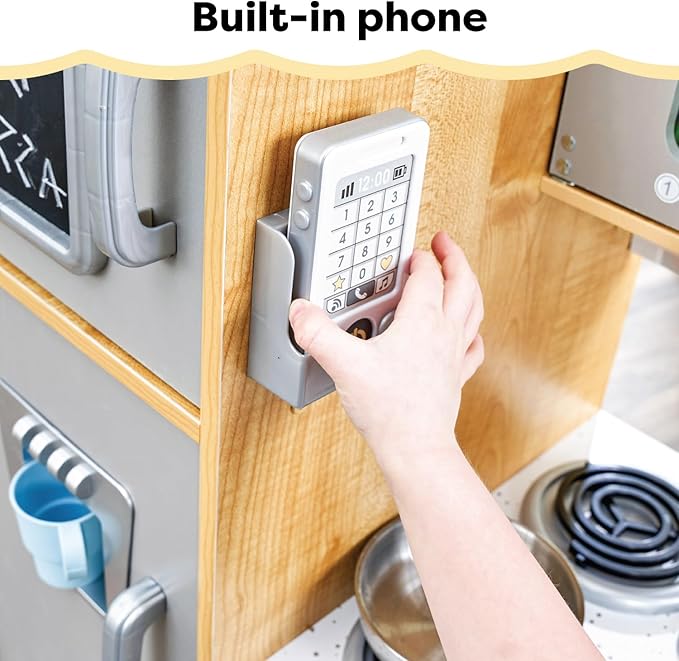 KidKraft Uptown Natural Wooden Play Kitchen with Play Phone, Chalkboard & Towel Rack, Gift for Ages 3+
