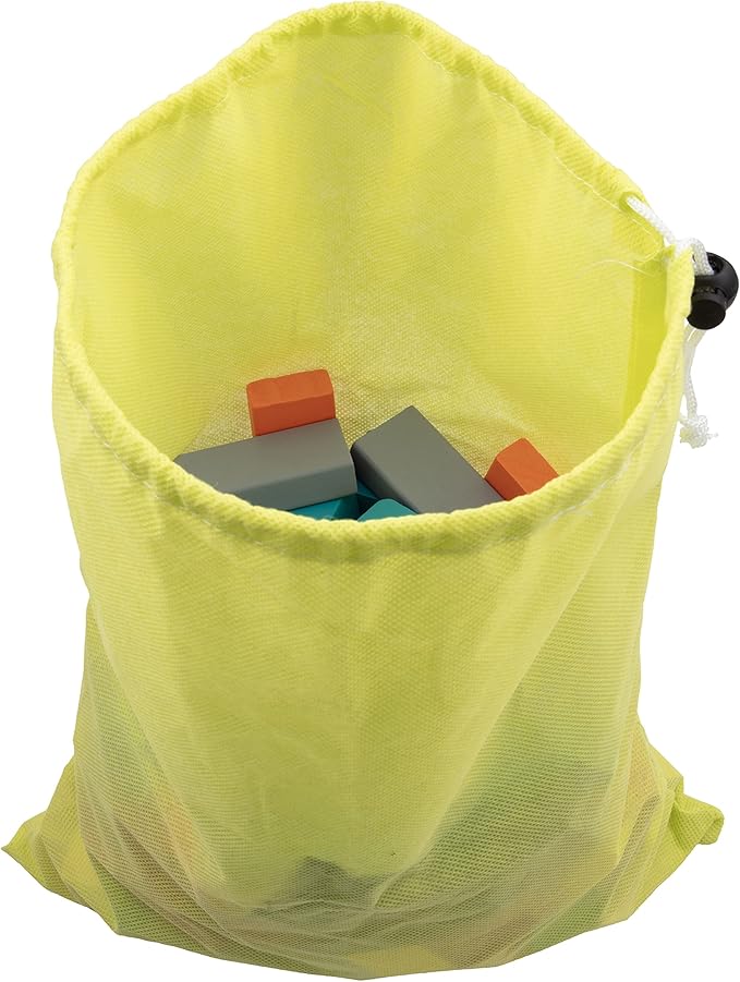 Wooden Blocks - 100 Pc Wood Building Block Set with Carrying Bag (Rainbow Colored)- 100% Real Wood in 7 Colors and 14 Shapes - Stack, Build and Store- Fun Gift, Back to School Project