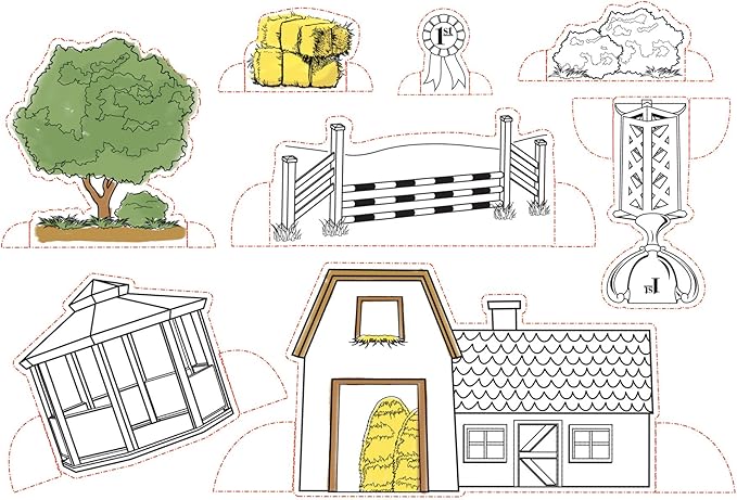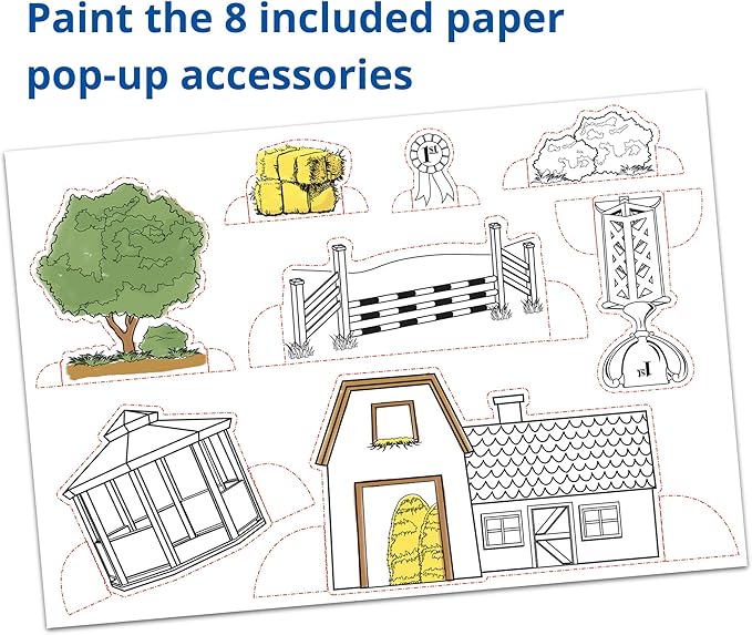 - Includes: 5 Stablemates horses, 6 paint pots with realistic horse colors, 1 paintbrush, 1 colorful instruction booklet, 1 sheet of 8 pop-out accessories
