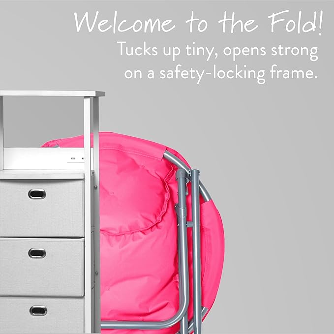 - FOLDABLE: A foldable steel frame supports up to 225 lbs and folds flat when not in use, making it easy to hide this faux fur saucer chair out of sight without taking up a significant amount of room in tight spaces. This saucer chair also has a safety locking mechanism on the leg for added support. This saucer chair is easy to transport around making it an item that is easy to carry. Carry this saucer chair with you to your next destination, as it is also travel friendly.