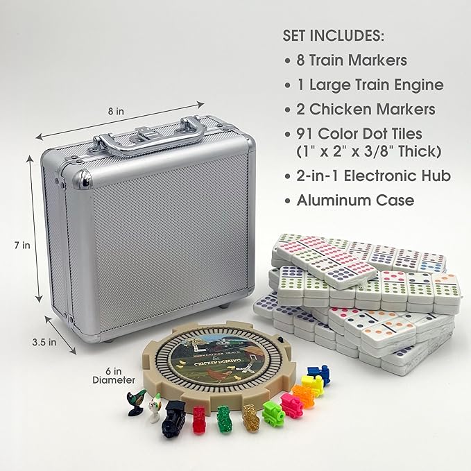 - Complete Set of Accessories: The set includes eight small train markers, one large train marker, and two chickens. These accessories are essential for playing Mexican Train Dominoes and add a strategic element to the game.