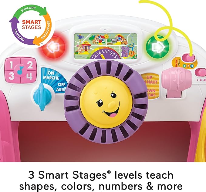 Fisher-Price Baby Learning Toy Laugh & Learn Crawl Around Car Activity Center with Smart Stages for Infants Ages 6+ Months, Pink (Amazon Exclusive)
