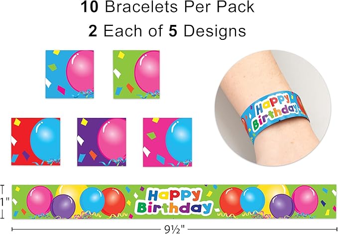 Teacher Created Resources Happy Birthday Balloons Slap Bracelets, Pack of 10