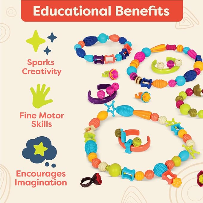 B. toys – Pop Arty! 275 Pcs- Jewlery Making Kit- Creative Pop Snap Bead Set for Kids –DIY Craft Jewelry Making Kit –Necklaces, Rings, Bracelets – 4 Years +