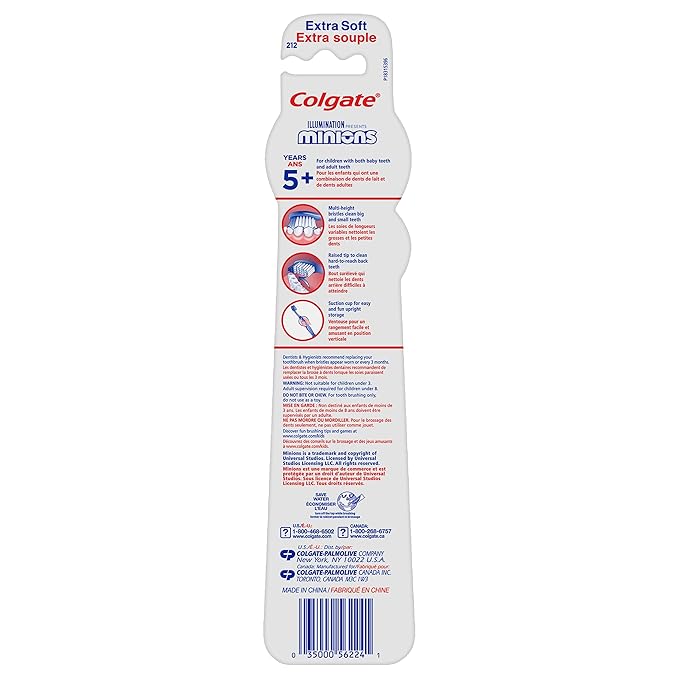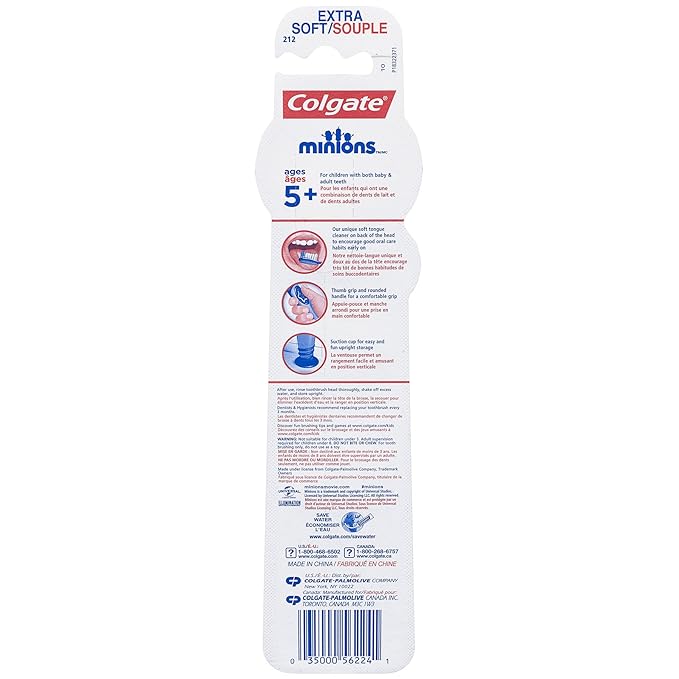 Colgate Kids , Minions, Extra Soft Toothbrush with Suction Cup, 2 Pack