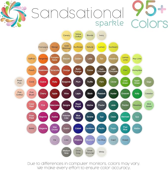 - Non-Toxic Craftsmanship, Made in the USA: Crafted in Burleson, Texas using organic ingredients, this non-toxic sand guarantees safety for all. UV-stable and resistant to fading in light, Sandsational Sparkle wedding sand ensures a lasting and vibrant presence in your wedding decorations, maintaining its allure over time. Sandsational Lilac decorative sand is colorful and made to last.