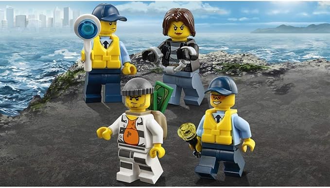- Includes 4 minifigures: a policeman, policewoman, female crook and a male crook