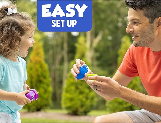 - INCLUDES: 3 no-spill bubble tumbler minis in assorted colors. Each tumbler is individual shrink wrapped and includes 2oz of non toxic bubble solution per tumbler and they are easy to refill. Its The perfect first bubble toy for any age and so easy to use that any baby, toddler and kid will be delighted every time.