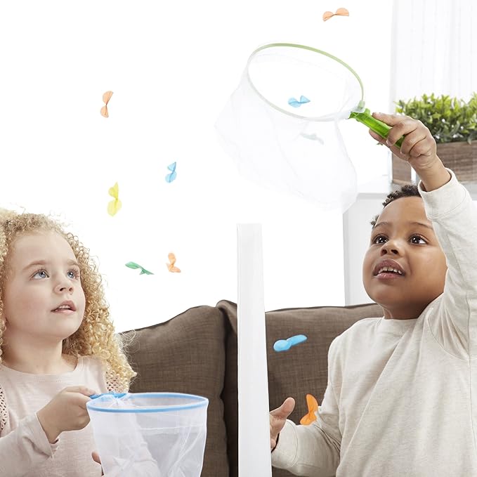 - INCLUDES BUTTERFLY NETS: In this lively and active game, kids can chase the butterflies that come out of the elephant's 3 foot trunk. The game includes 20 colorful butterflies and 3 butterfly nets