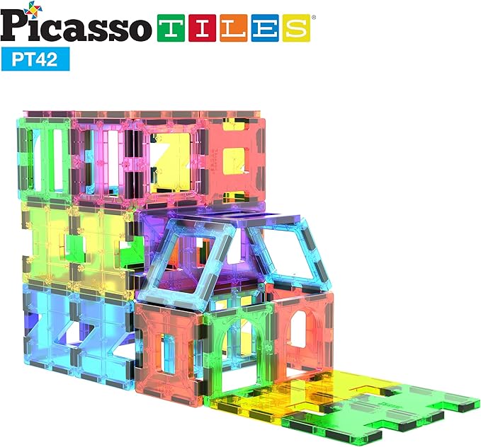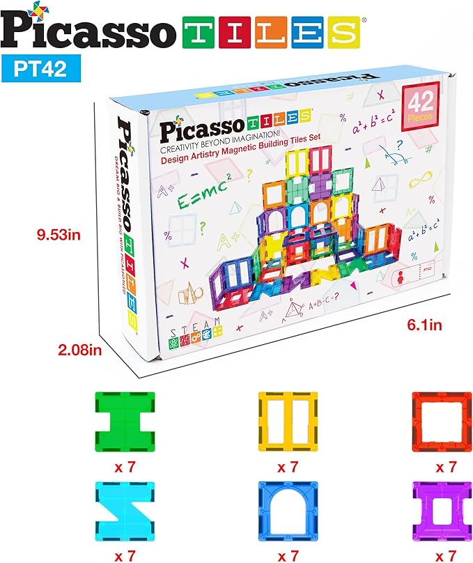 - [Starter Set for Magnetic Tiles] - PicassoTiles Starter Set comes with 42 pieces of Magnetic Tiles, a STEM entertainment to encourage creativity and development of toddlers using colorful geometric 3D shapes. These Magnetic Block will help develop boys and girls skills in Science, Technology, Engineering and Mathematics.