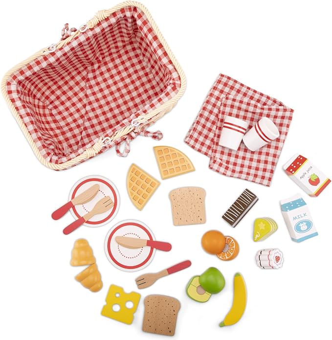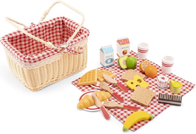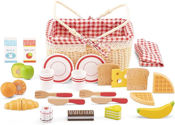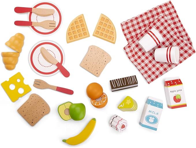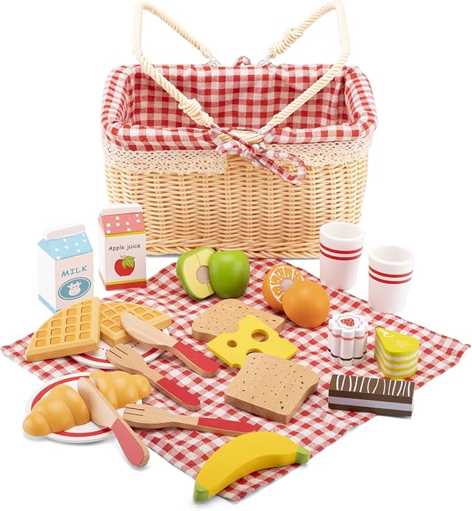 New Classic Toys Picnic Set - Pretend Play Toy for Kids Cooking Simulation Educational Toys and Color Perception Toy for Preschool Age Toddlers Boys Girls