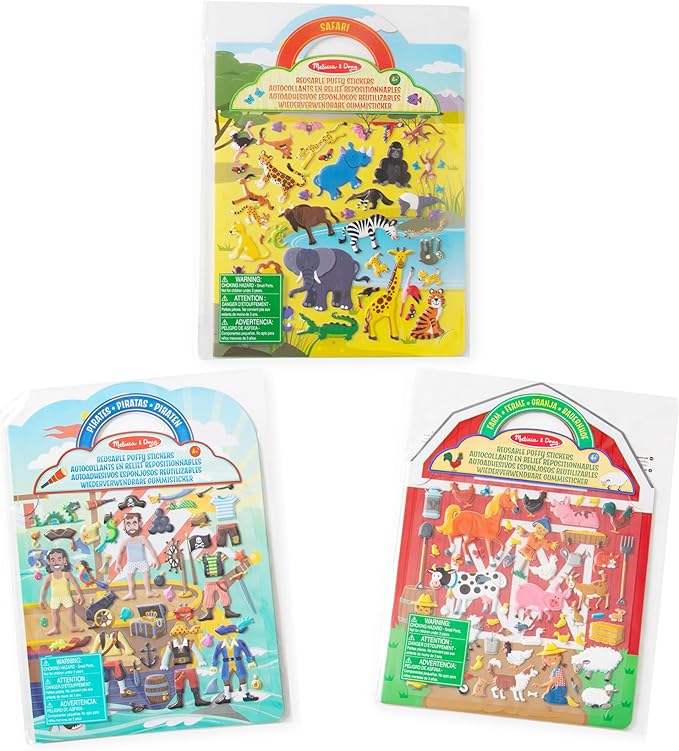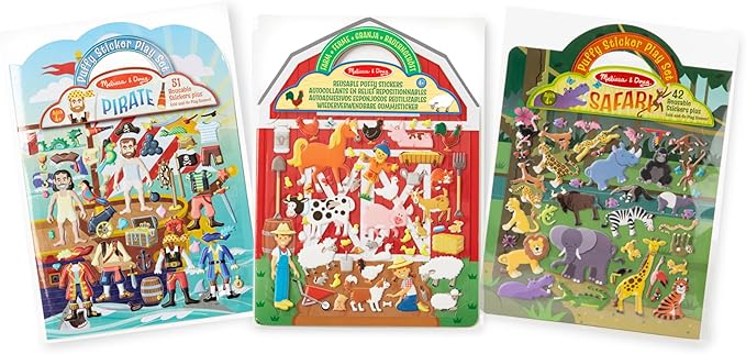 Melissa & Doug Puffy Sticker Play Sets - Safari, Pirate, On the Farm - Reusable Dress Up Doll Stickers, Restickable Puffy Sticker Book For Kids Ages 4+